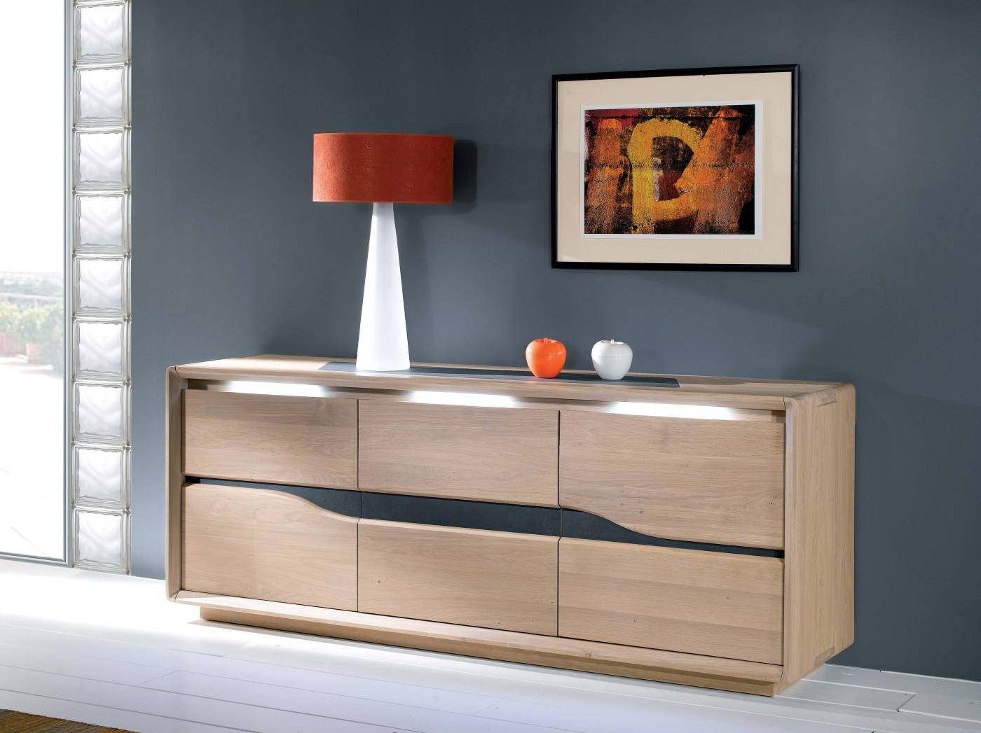 Enfilade contemporaine en chĂȘne massif et cĂ©ramique â ĂlĂ©gance et fonctionnalitĂ©