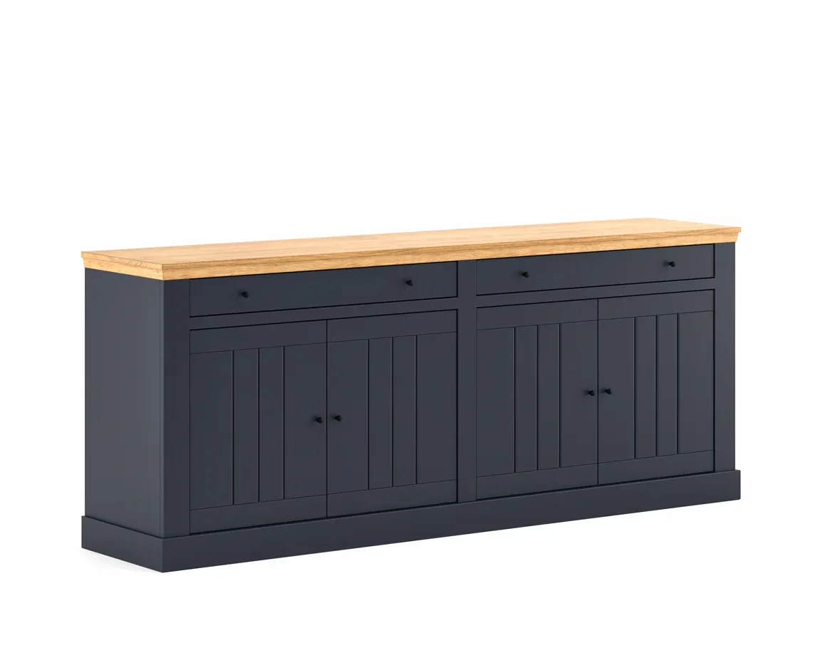 DotĂ©e dâune cloison centrale et de tablettes rĂ©glables de chaque cĂŽtĂ©, cette enfilade offre un espace de rangement optimal pour votre vaisselle, linge de table ou objets dĂ©coratifs. Les portes battantes sont Ă©quipĂ©es de charniĂšres invisibles Ă amortisseurs, assurant une fermeture fluide et silencieuse.