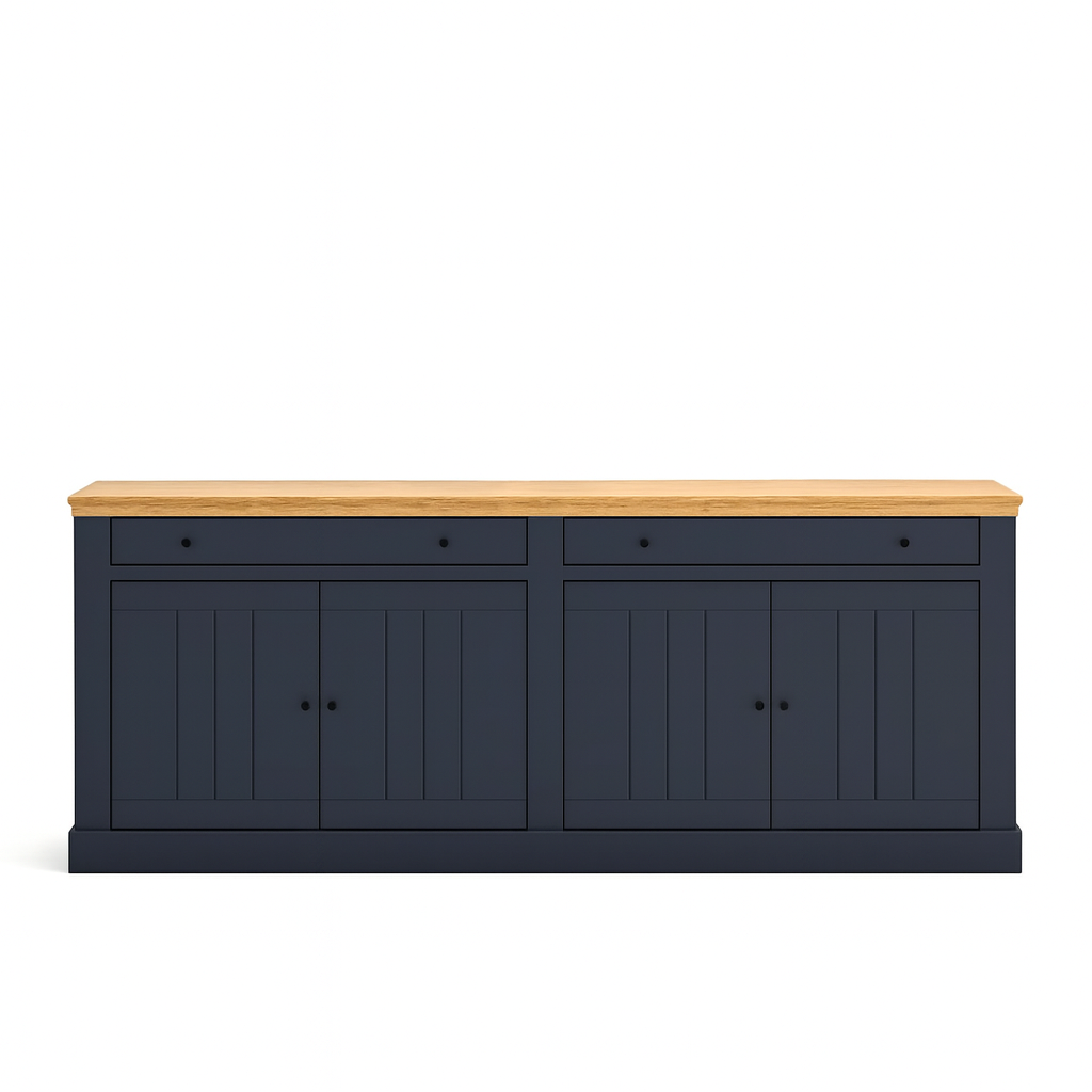 Alliez Ă©lĂ©gance et authenticitĂ© avec cette enfilade en chĂȘne massif, signĂ©e Les Ateliers de Langres.
