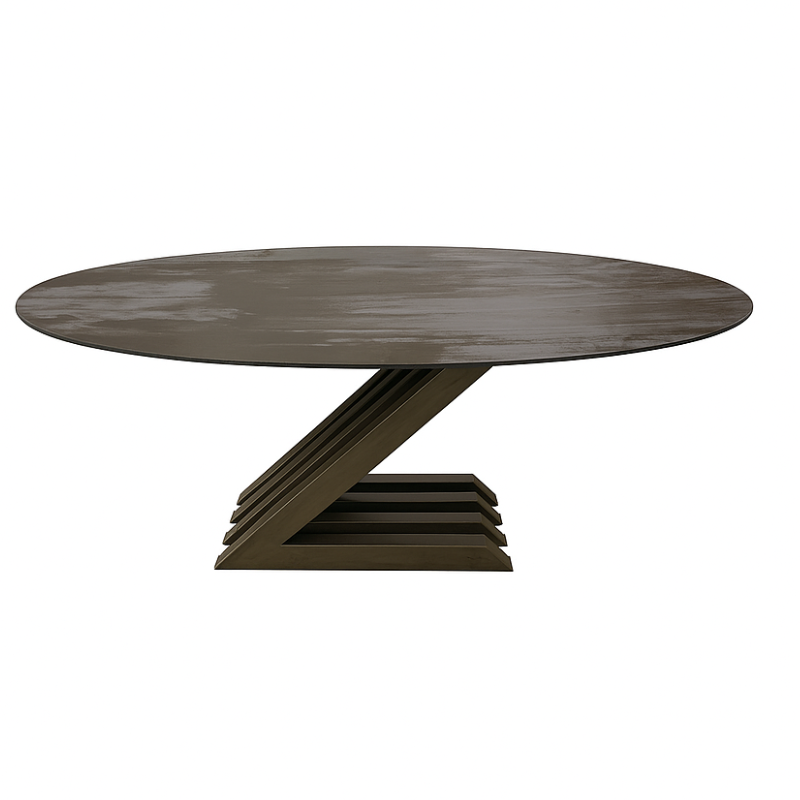 Cette table de salle à manger avec plateau ovale est personnalisable et ultra design avec son pieds Z design en métal.